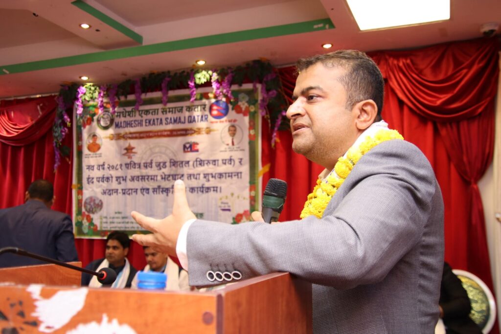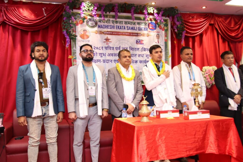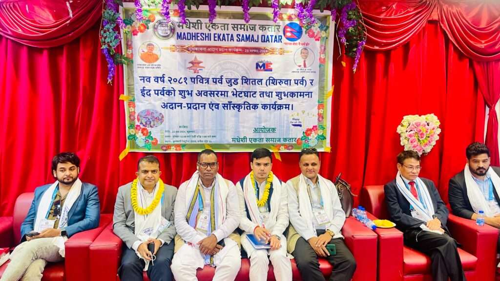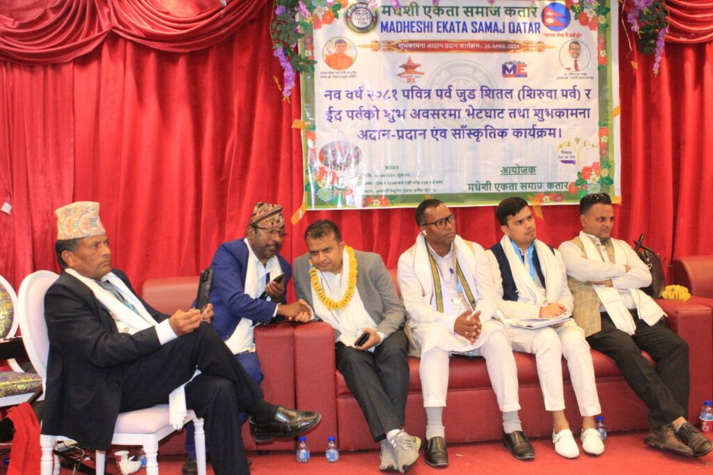 काठमाडौं, वैशाख १६ गते । मधेशी एकता समाजको कतार शाखाले यस वर्षको नयाँ वर्ष, जुडशीतल तथा ईद पर्वको अवसरमा शुभकामना आदानप्रदान तथा बृहत् सांस्कृतिक कार्यक्रम आयोजना गरेको छ । बैशाख १४ गते शुक्रबारको दिन समाजको कतार शाखाले दोहाको सनैयास्थित फुलवारी रेस्टुरेन्टको सभाहलमा भव्य कार्यक्रम आयोजना गरेको हो ।
